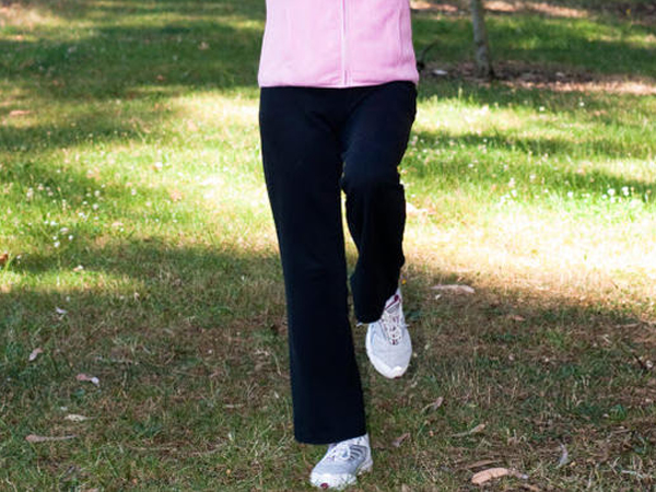 Đứng thẳng và vịn tay vào lưng ghế. Nâng chân phải ra phía sau và co gối  sao cho gót chân chạm mông. Không được cử động phần hông và gập nhẹ đầu gối chân trái. Giữ tư thế đó 1 giây rồi lặp lại động tác từ 10 đến 15 lần sau đó đổi chân. Lặp lại chu trình thêm 1 lần cho cả hai chân.